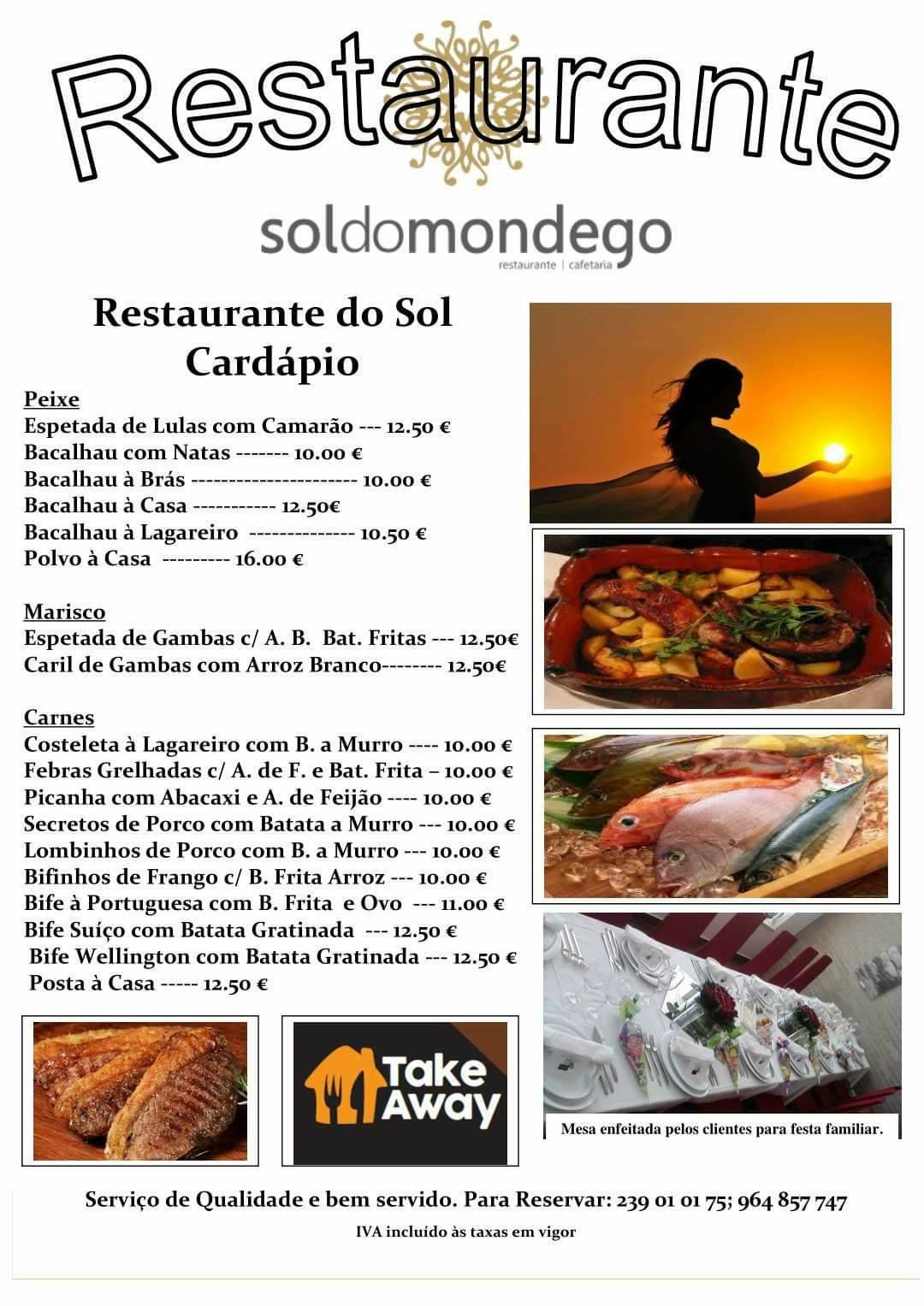 Venha ou encomende no Restaurante Sol do MONDEGO